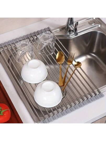 1 件装不锈钢可扩展碗碟干燥架,位于水槽上方,碗碟干燥沥水板,黑色和灰色,带可调节支臂,实用厨房水槽,黑色,蔬菜水果炊具收纳架,适用于厨房浴室,新年圣诞礼物 - 彩色 - 查看 1