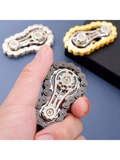 1 件不锈钢齿轮链,创意轮设计,成人减压手指玩具,精密机械旋转器,烦躁玩具,有助于集中注意力和放松,办公室玩具 | 精致的设计 | 耐用的手指陀螺,手指陀螺玩具 - 彩色 - 查看 1