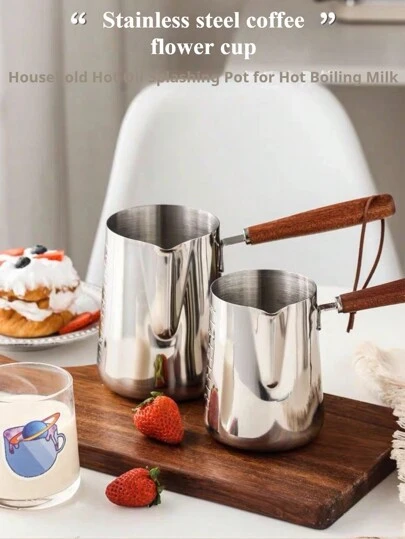 1 件不锈钢拿铁艺术杯,带刻度,奶泡器,蜡熔杯,耐热木手柄,兼容电磁炉,多用途咖啡奶油壶,适用于咖啡馆、咖啡店、家庭使用的牛奶蒸锅,250ml/350ml/600ml/900ml 返校
