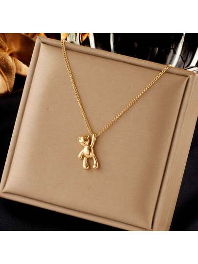 1 件不锈钢项链,带亮面锌合金 3D 卡通可爱熊吊坠,简约百搭女士项链,适合日常搭配