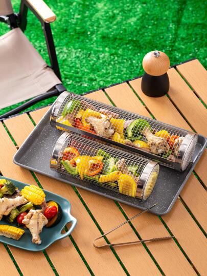 1入全不銹鋼煙熏網圓形滾動煽動管,適用於戶外燒烤 - 銀色 - 查看 1