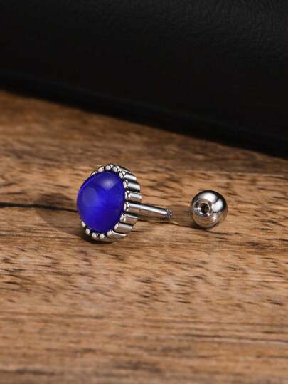 1 件不鏽鋼圓形藍色藍寶石男士耳環 - 寶藍色 - 查看 1