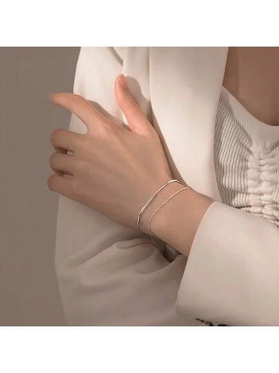 1個星星半手鐲半鏈女性高端極簡雙層手鐲,流行的ins設計 - 銀色 - 查看 1