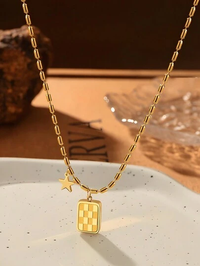 1個18k黃金蝴蝶&時鐘&星形吊墜,時尚鈦鋼禮盒包裝項鍊,適合日常佩戴,情人節,嘉年華,母親節的女性禮物 - 星星 - 查看 1