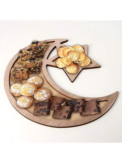1入星月木質裝飾品,適用於開齋節甜點托盤 - 適合房間裝飾、生日派對和假日慶祝活動 - 杏色 - 查看 1