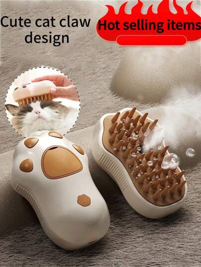 1 件,蒸汽猫刷,三合一电动宠物美容工具,便携式硅胶自清洁蒸汽刷,适用于猫和狗,舒适按摩和脱毛,护发,爪子设计,咖啡色随机发送,电池:150mAh - 彩色 - 查看 1