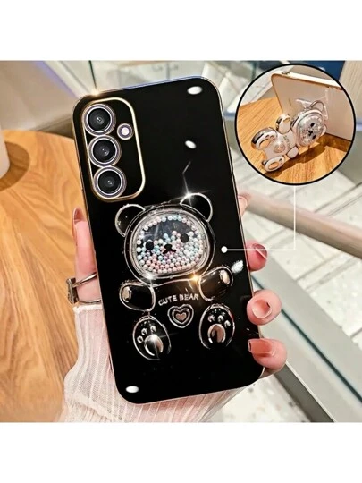 1 个直边手机壳适用于三星 Galaxy S24 FE、16 Pro Max、Edge 30、Redmi Note 13 Pro+、Smart 8/Infinix Hot 40i/Spark 20/Spark 20C/Spark Go 2024、Honor X8,采用复活节彩蛋熊设计和硅胶挂绳,带隐形电镀支架,防水防震防摔防刮 - 黑色 - 查看 3
