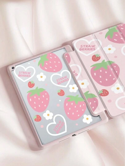 1 件草莓双面彩绘亚克力透明水晶后盖保护壳兼容 iPad 10.2 英寸 2021/2020/2019 iPad 第 9/8/7 代,兼容 iPad 第 5 代 (9.7 英寸)、iPad Air 第 5 代 2022 /iPad 第 10 代/iPad Pro 11 英寸 2024,带笔架,支持自动睡眠/唤醒盖,具有防摔功能 - 多色 - 查看 2