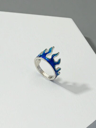 1款街頭風格火焰設計男士時尚戒指,適合日常穿戴、假日、派對禮物 - 藍色 - 查看 1