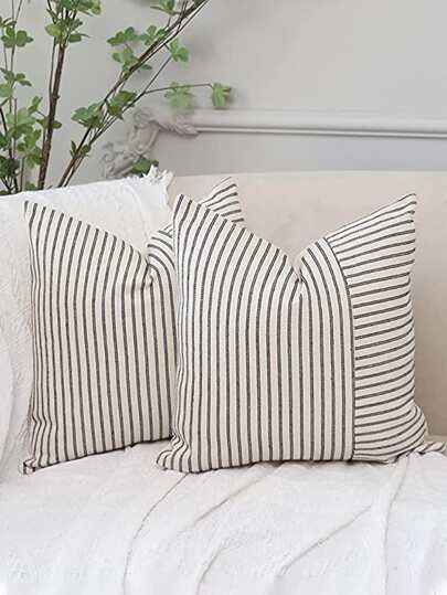 1入組條紋圖案靠墊套不附帶墊芯 - 彩色 - 查看 1