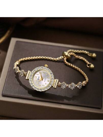 1 件学生数字圆形表盘精致石英表,配有可调节表带,适合作为情人节礼物 - 均碼 - 查看 1