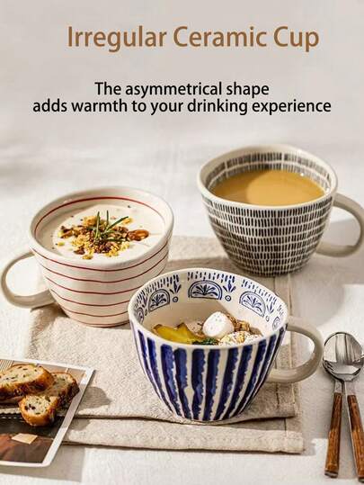 1 件时尚陶瓷杯,家庭主妇牛奶杯,家庭/办公室早餐杯,女士咖啡杯 - 彩色 - 查看 10