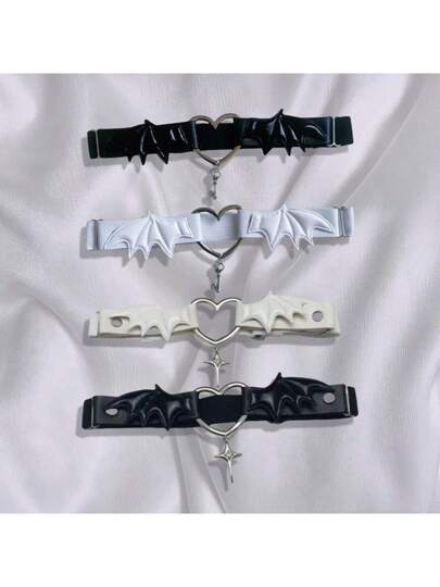 1 件亚文化朋克暗黑之翼骷髅心形腿袜带,可调节弹性 Y2K 坏蛋性感腿环 - 彩色 - 查看 1