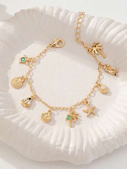1件夏季海滩海星贝壳吊坠手链,热带棕榈树鱼形手链,波西米亚风女士饰品 - 彩色 - 查看 1