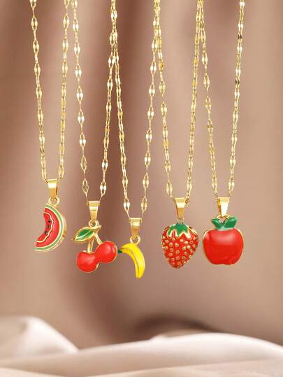 1 件甜美夏日水果系列苹果草莓樱桃香蕉西瓜吊坠不锈钢嘴唇链锁骨链项链适合男孩女孩夏季旅行学校日常佩戴时尚优雅珠宝 - 彩色 - 查看 1