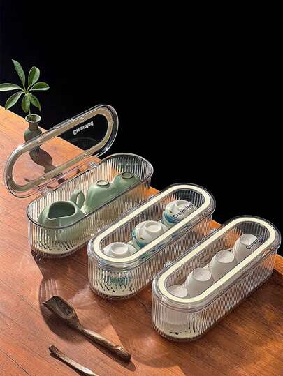 1 件装茶道配件收纳盒带翻盖,透明防尘茶壶和杯子收纳架 - 透明 - 查看 1