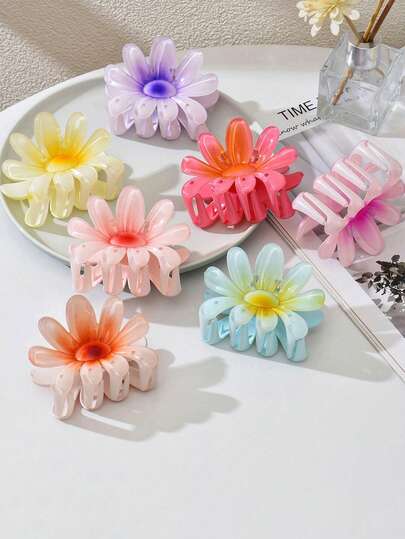 1件装全新糖果渐变色雏菊形发夹,是送给女性的完美礼物,包含大号发夹、螃蟹形发夹和发饰。送给女性朋友的理想礼物。夏季 - 彩色 - 查看 1