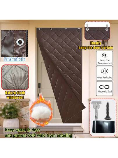 1 件隔热门帘,冬季孔眼门廊罩,防风保暖,防寒防热,牛津布,厚棉纤维,单片门隔断毯,适用于冬季寒冷,客厅,车库,卧室,灰色,棕色,90 * 210 厘米,100 * 210 厘米 - 彩色 - 查看 1