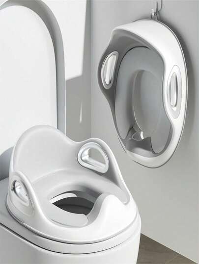 1个幼儿如厕训练座圈,带安全扶手、可拆卸软垫、防滑设计和防溅挡板,男女通用儿童马桶座圈(灰色) - 彩色 - 查看 1