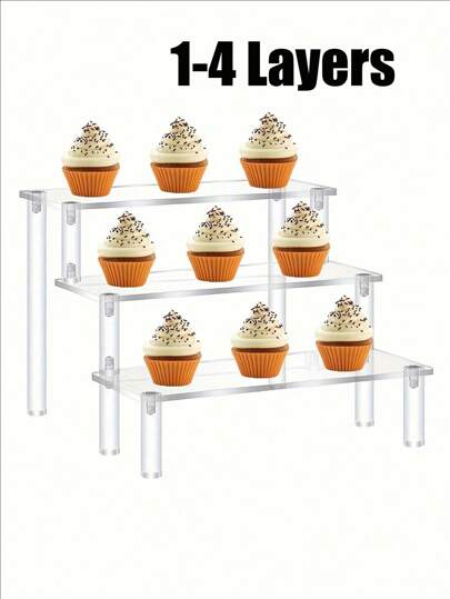 1 件透明亚克力组装楼梯甜点纸杯蛋糕桌面展示架,1-4 层糕点架,寿司拼盘,宴会冷菜分层架和甜点架圣诞礼物 - 圓柱腿款 - 查看 1