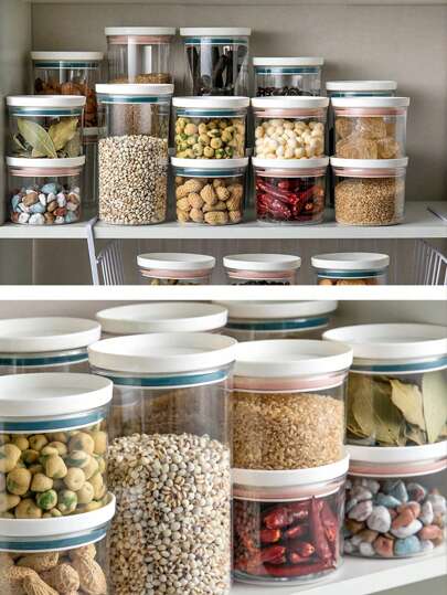 1 件透明 PET 密封储物罐,日式密封食品容器带盖,塑料厨房食品储藏罐,用于香料、茶叶等 - 無色 - 查看 5