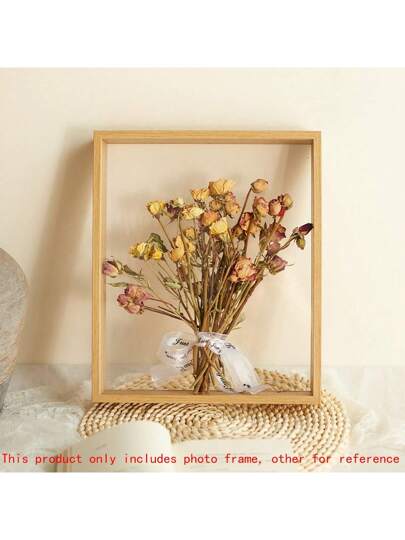 1入組透明木質和乾花側面展示盒框架 - 原木顏色 - 查看 1