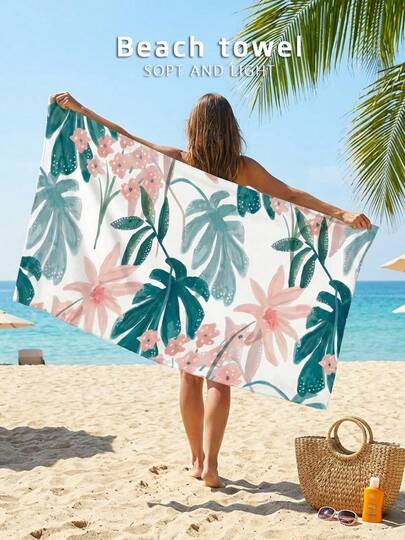 1条热带树叶花卉印花沙滩巾,采用超柔软超细纤维材质,防沙速干,适合泳池使用,大尺寸沙滩巾,是女性旅行、健身、瑜伽、度假、徒步、淋浴、露营等多种场合的必备单品。