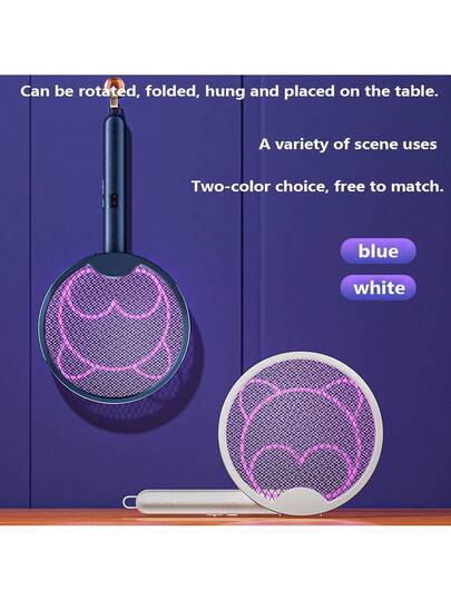 1 件 USB 可充电折叠式电动灭蚊器苍蝇拍捕蚊器三合一灭蚊灯家用灭蝇虫捕蝇器,500mAh - 彩色 - 查看 4