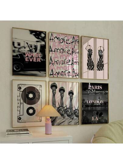1 件无框时尚少女腮红粉色画廊,斑马纽约巴黎洛杉矶伦敦海报,学院风美学壁画,豹纹时尚高跟鞋印花 - 彩色 - 查看 33