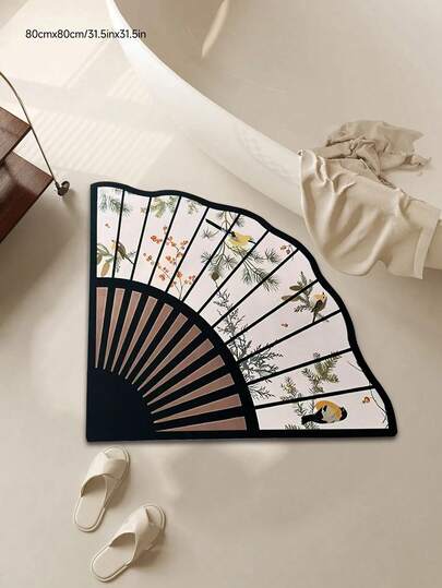 1 件独特形状扇形图案硅藻土垫、地毯、浴室吸水门垫、浴室和厨房防滑速干垫 - 彩色 - 查看 1