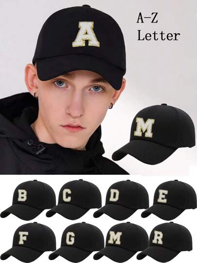 1顶男女通用A-Z字母刺绣棒球帽,可调节户外运动休闲帽,防晒 - 黑色 - 查看 24