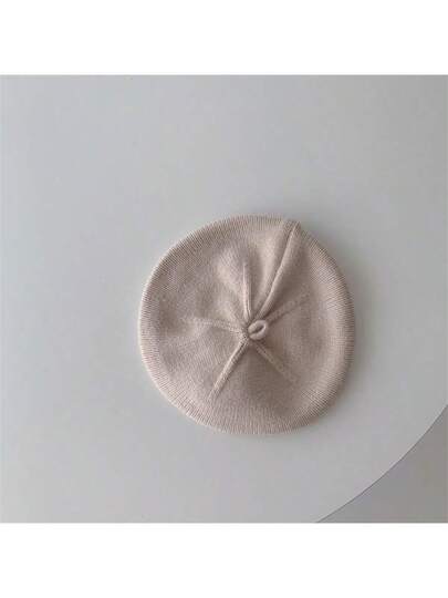 1 件裝男女通用男嬰女孩無簷小便帽,純色針織畫家帽,適合春秋 - 卡其色 - 查看 1