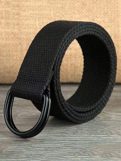 男女通用双环帆布腰带,黑色D形环皮革腰带,带半圆形环和加长帆布袋 - 黑色 - 查看 1