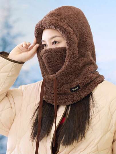 1件男女通用骑行围脖帽子,抓绒面罩,防风保暖滑雪帽,适合日常外出、滑冰、滑雪等。 - 棕色 - 查看 5