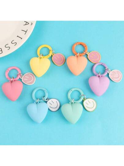 1 件男女通用心形汽车钥匙扣,可爱卡通笑脸金属环钥匙圈情侣包包吊坠配件学校汽车配件哥特 Y2k 包包配件挂绳带身份证夹汽车配件包饰 - 彩色 - 查看 5