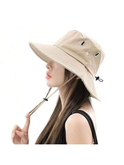 1頂男女通用多色夏季戶外遮陽帽,透氣與防曬選擇,適用於釣魚、行山、旅行、牛仔風格的大沿休閒帽 - 米色 - 查看 1