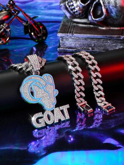 1 件男女通用朋克嘻哈滴油黑蓝山羊头项链,山羊吊坠,情侣款,礼物珠宝 - GOAT - 查看 1