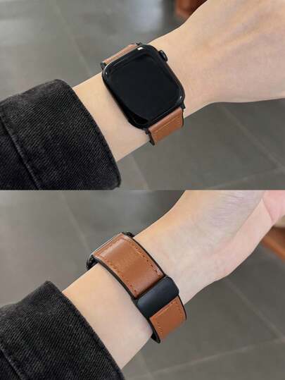 1条男女通用真皮硅胶磁吸表带,兼容 42mm、38mm、40mm、41mm、44mm、45mm、46mm、49mm,时尚智能手表替换表带,适用于Series Ultra2、Ultra SE2、SE 11、10、9、8、7、6、5、4、3、2、1,适合作为学生返校礼物 - 棕色 - 查看 7
