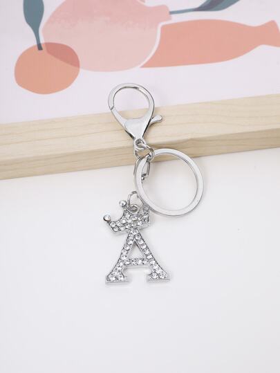 1入組銀色a字母鑰匙扣,鑲嵌水晶,情侶禮物,背包飾品 - 銀色 - 查看 1
