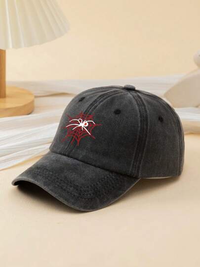 1頂男女通用蜘蛛紋印花戶外休閒時尚棒球帽,適合日常穿著