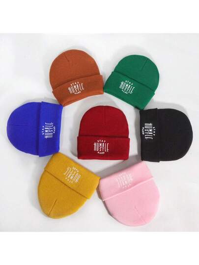 1入 Stay字母刺繡針織無帽帽,男女適用,秋冬保暖,韓式休閒風格,多用途,防風保暖、耳保護,戶外運動 - 彩色 - 查看 1