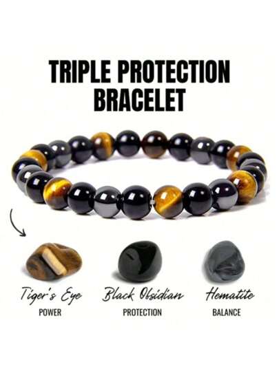 1 件男女通用三重防护磁性赤铁矿虎眼石黑曜石不锈钢手链 - 结构坚固、能量强大、独特的宝石混合 - 是男士父亲节以及任何特殊场合圣诞节新年情人节节日礼物的完美礼物 - 彩色 - 查看 1