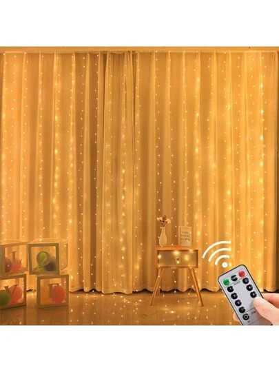 1入組usb供電3*3米led銅線室內/室外串燈帶,配有10個掛鉤、遙控器、8種燈光模式,適用於露營、家居、窗簾裝飾、燈飾裝飾