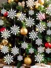 30 件圣诞白色雪花饰品塑料闪光雪花饰品适用于冬季圣诞树装饰尺寸各异的工艺雪花,圣诞节