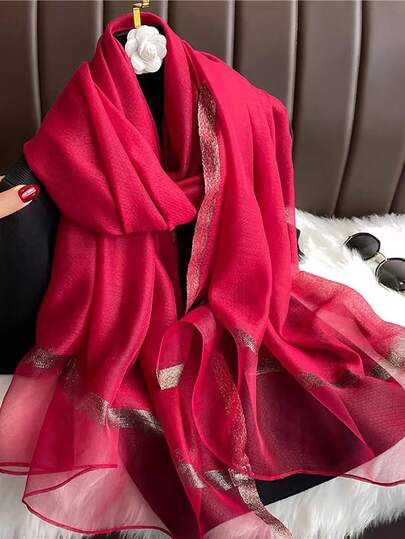 1條情人節酒紅色女士絲巾,適用於春季日常穿著,帶有保暖和護頸設計