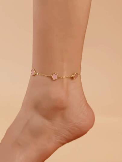 1 件情人节时尚奢华独特五角星和花朵形状铜脚链,适合女士、婚礼/毕业/约会礼物情人节、妈妈、母亲、母亲节、礼物 - 粉色 - 查看 1