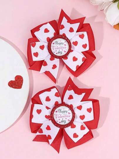 1 件情人节红色爱心蝴蝶结发夹,带瓶盖装饰的可爱风车发夹,适合女孩的涤纶爱心发饰,快乐,发夹 - 彩色 - 查看 1