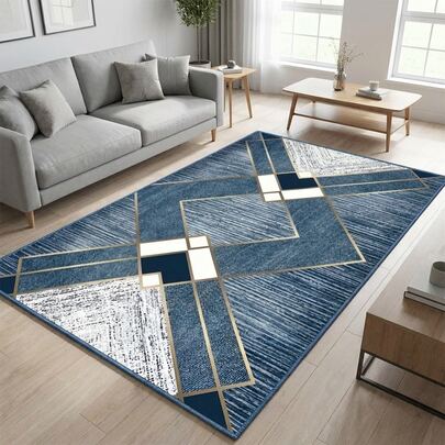 1 件装黑金几何图案天鹅绒地毯,现代奢华柔软天鹅绒长方形地毯,底部防滑,适用于客厅、卧室、家居装饰,是节日派对、画廊空间和日常高端时尚的理想之选。