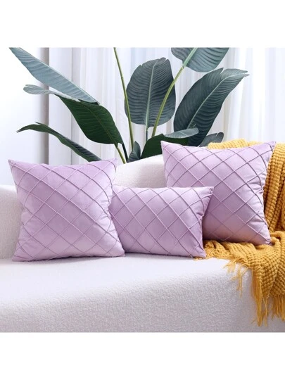 1 件天鹅绒装饰褶皱枕套,方形软垫套,适用于沙发和咖啡店 - 淡紫色 - 查看 1