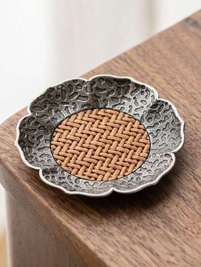 1 件复古合金藤制杯垫,中式茶杯垫,高端防滑防烫茶具,适用于家庭、茶馆等场合放置茶杯,避免水洒在桌子上 - 彩色 - 查看 1